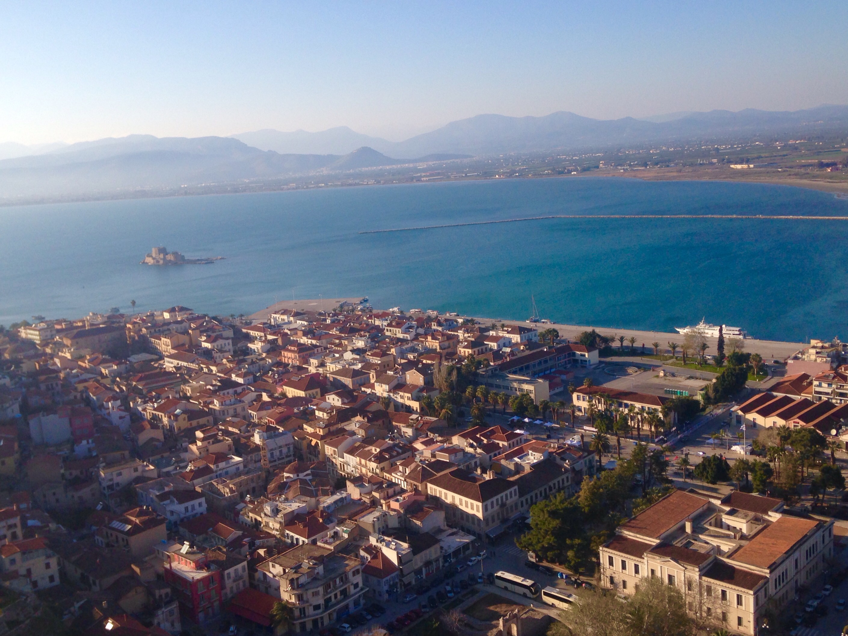 The next day we headed up around to Nafplion. We pull up the main sail hopefully but the wind hadn’t picked up yet so we ended up motoring. The prevailing wind here is called the Bouka Doura, a thermal sea breeze, so it doesn’t get going until early afternoon. The coast line is beautiful around here and the remaining snow on the mountains to the south were a reminder that the warm temperatures we’re experiencing here haven’t quite reached the higher ground in-land. We’ve done well to wait a while before setting off north to Albania on the bike I think.