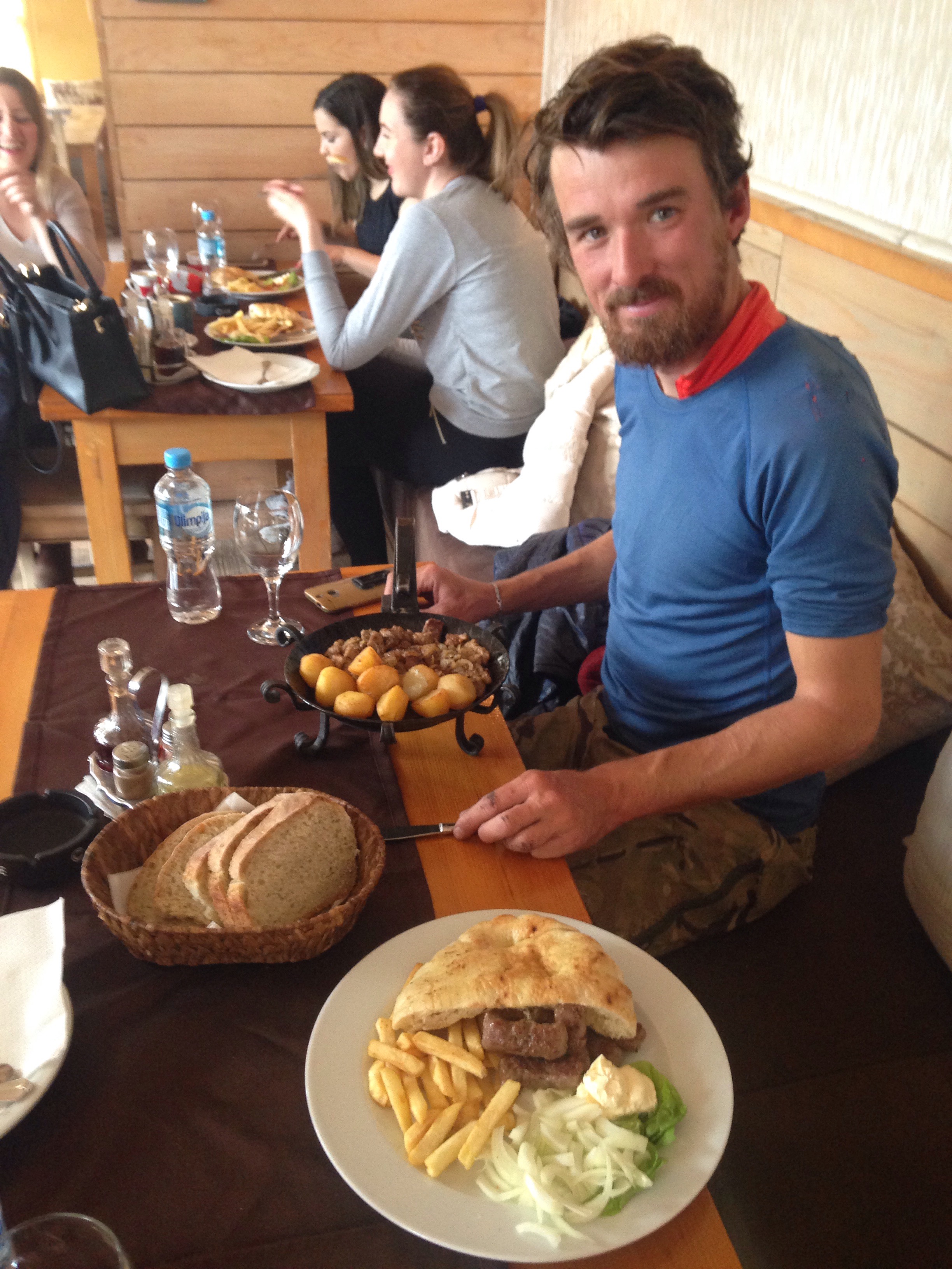 We cower in our shelter and watch all the tv programmes we’ve downloaded from BBC iplayer hoping it’ll stop. It doesn’t, and at 2pm we admit defeat and decide to find a restaurant for dinner. We weren’t going to get anywhere today… The best place we find is a pizza joint in a big shopping centre where we hide for the rest of the evening. The snow melts quickly but it’s still pretty cold and we simply head back to the same shelter for a second night.