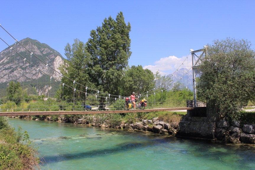 There was quite a hard climb out of Bled town but then we joined back onto the good cycle route and the cycle turned into a manageable steady incline. This continued all the way to the ‘border’ with Italy and by the afternoon we were soon crossing into country number 22. Like Greece, suddenly we were cycling through a country we have both visited lots before – home feels closer than ever!