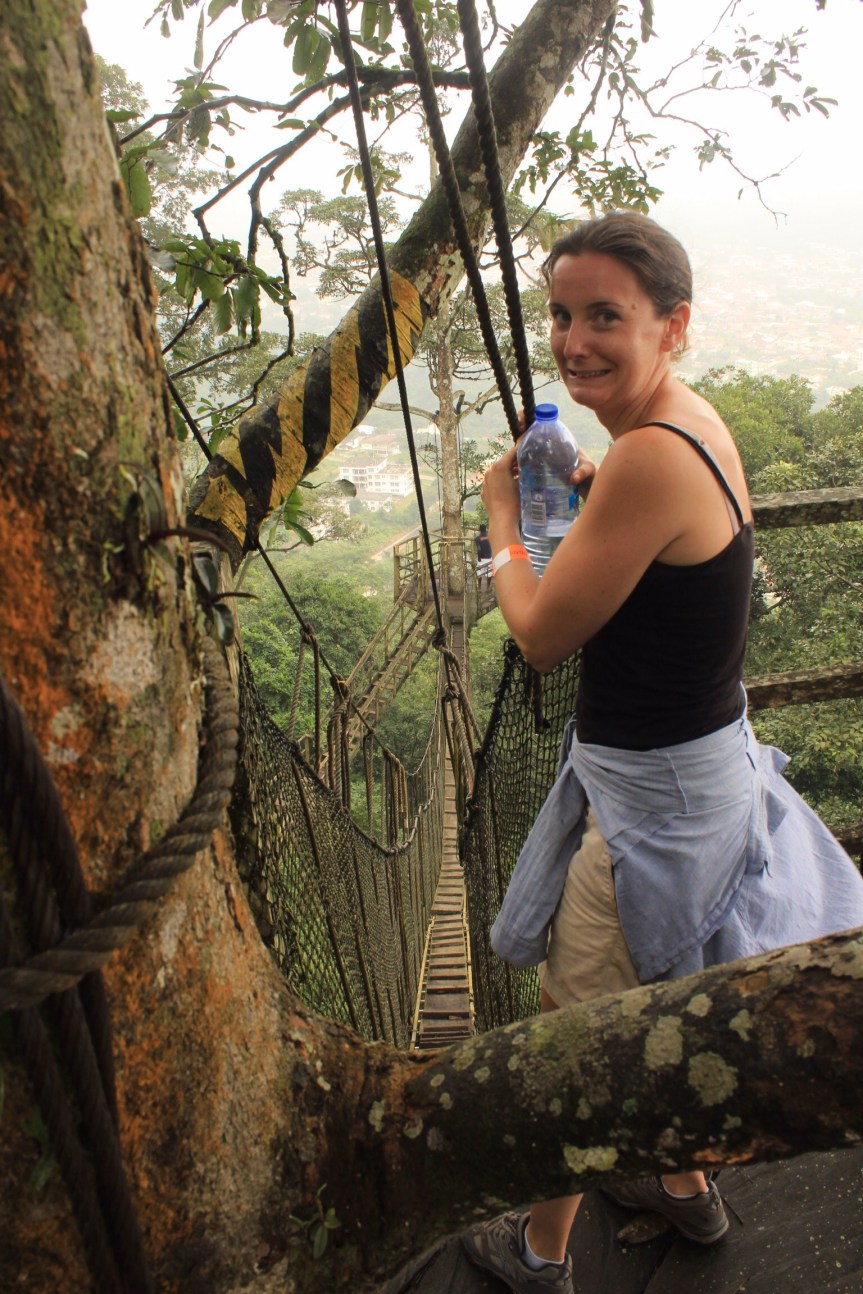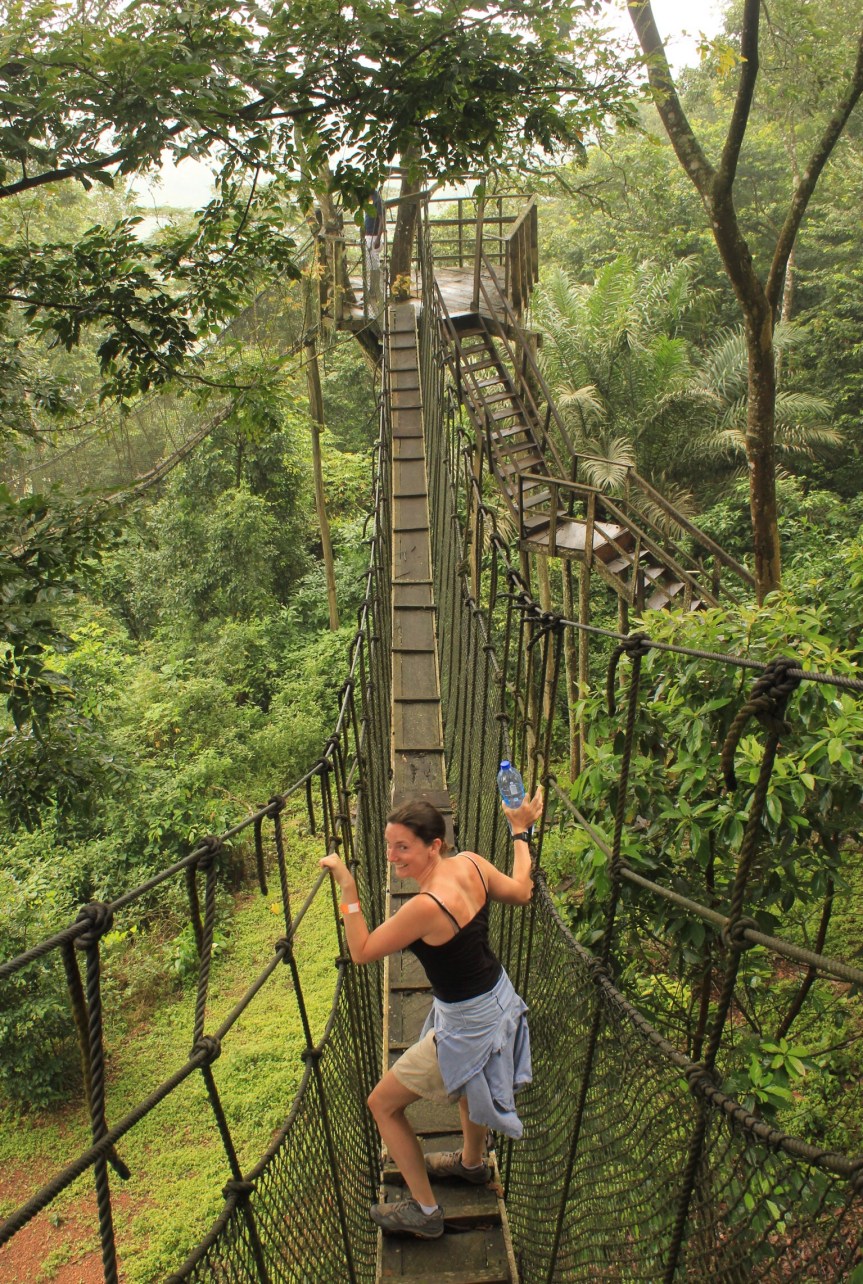 We woke to an extremely misty morning which obviously had no intention of lifting. This was a real shame as we had plans to visit a canopy walkway in Odo. By the time we reached the town the mist had slightly lifted and over a second breakfast we decided to go for it. The experience was well worth it even though we couldn’t see a huge amount. Just watching each other walk the route was comedy gold. According to the guidebook, the wooden walkways have been built to European safety standards but we can only presume the writer hasn’t lived in Europe for a good 25 years. As well as loose screws and rotting wood the mist had made the whole thing a slippery nightmare and we regularly found ourselves clinging onto the sides for support.