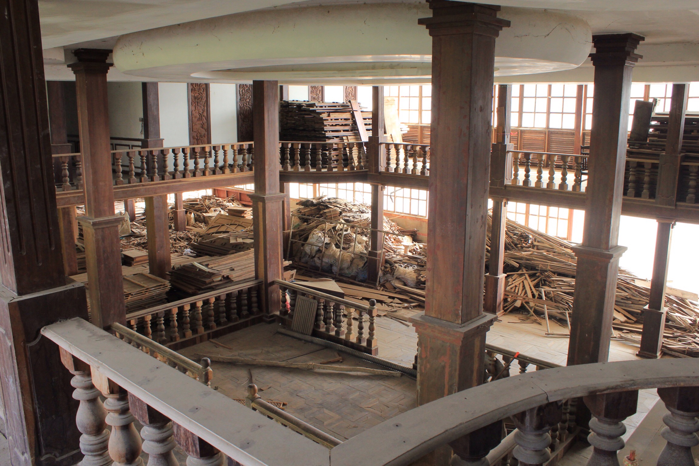 We make our way through the maze of empty rooms and long hallways, poking our heads behind solid teak doors and ascending grand colonial style staircases, clouds of dust created with every step. This place is wonderfully eerie and we feel we could be in some sort of adventure video game.