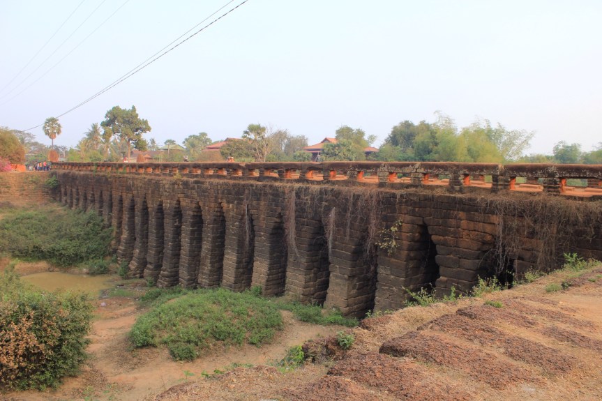 95km was gobbled up easily and we stopped at the Spean Praptos bridge which is an 85m long arched bridge dating back to Angkor and is still in use. A perfect place to camp beside; or so we thought!