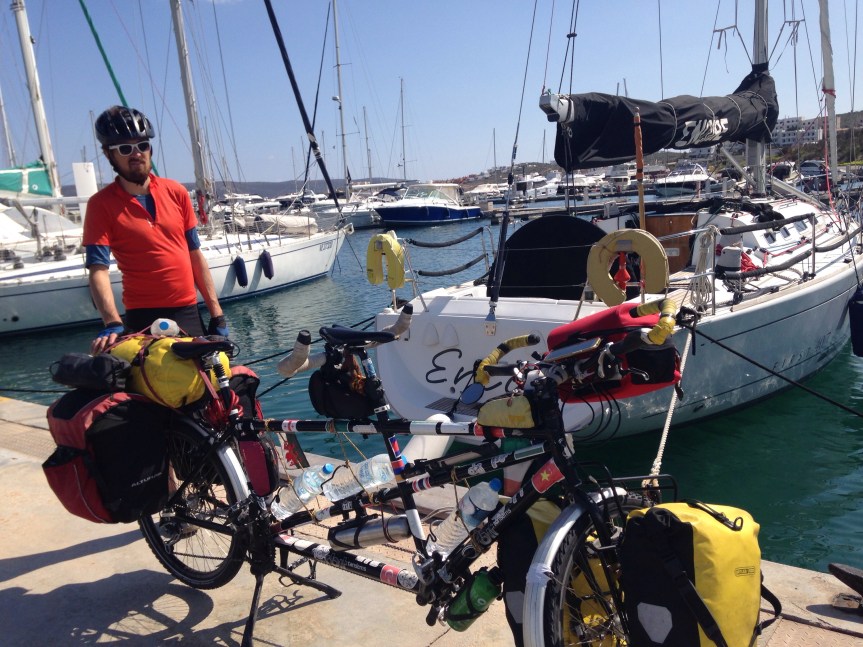 Kate and George’s flight arrived early evening on Saturday so we decided to spend the second part of the week visiting Athens for a few days. We were both looking forward to getting back on the bike and wanted to test out our new gearing system and check things were working well. Unfortunately a boat isn’t the best storage place for a bike and so there was some maintenance jobs we had to perform on tandem before he was road worthy – mainly rust control on the chain and frame.