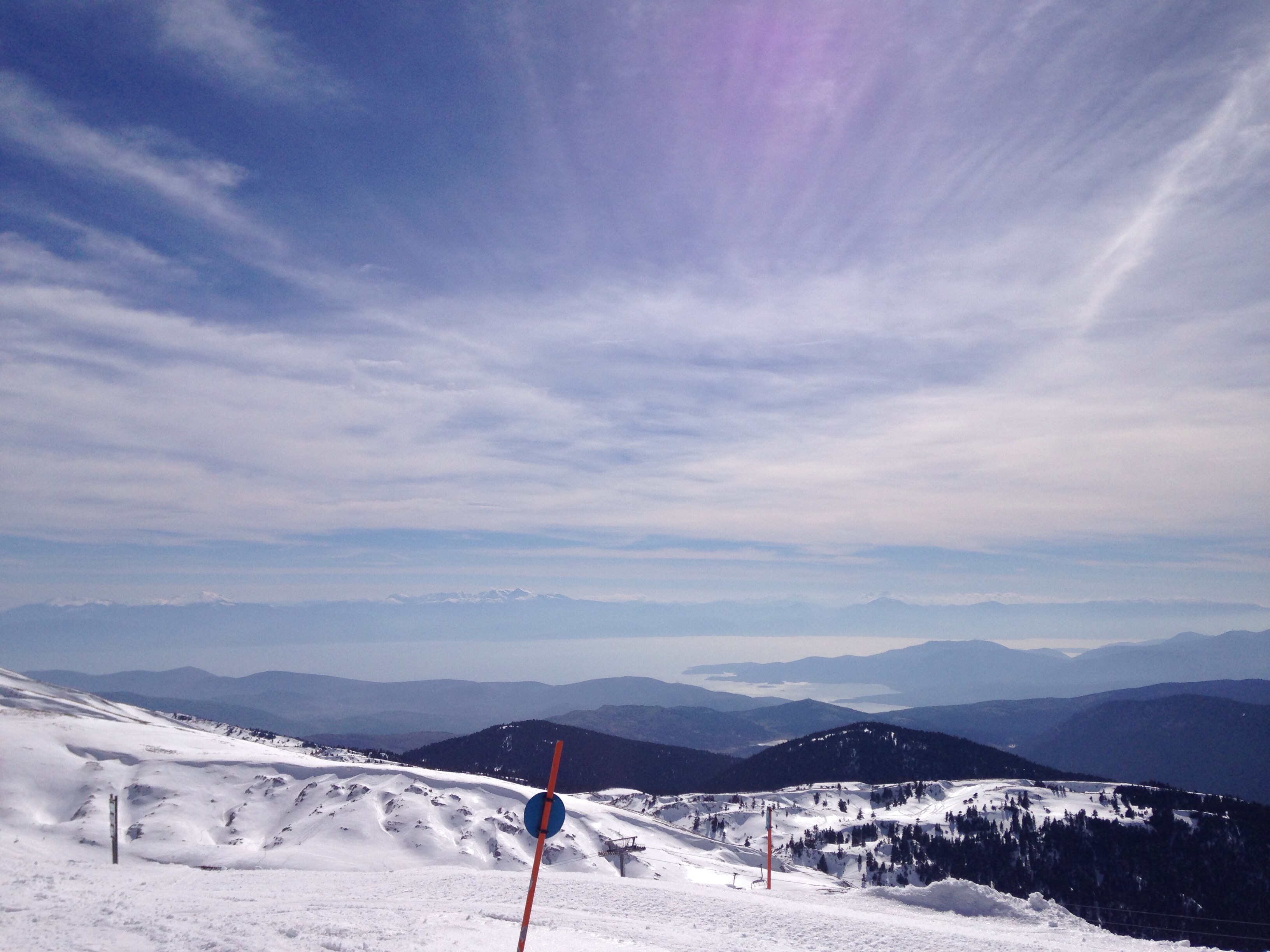 We had a brilliant day – Paddy snowboarding and me skiing. It was good to go and do something completely different despite it making a bit of a dent in our budget. Pernassos is quite a small resort with mainly blue runs interspersed with a few reds so perfect for our level. It wouldn’t be big enough for a week of skiing and by the end of the day we had done most of the runs. The weather was beautiful and the resort boasts incredible views all the way out to the Gulf of Corinth on one side and the Gulf of Malia on the other with spectacular snow capped mountain ranges sandwiched in the middle.