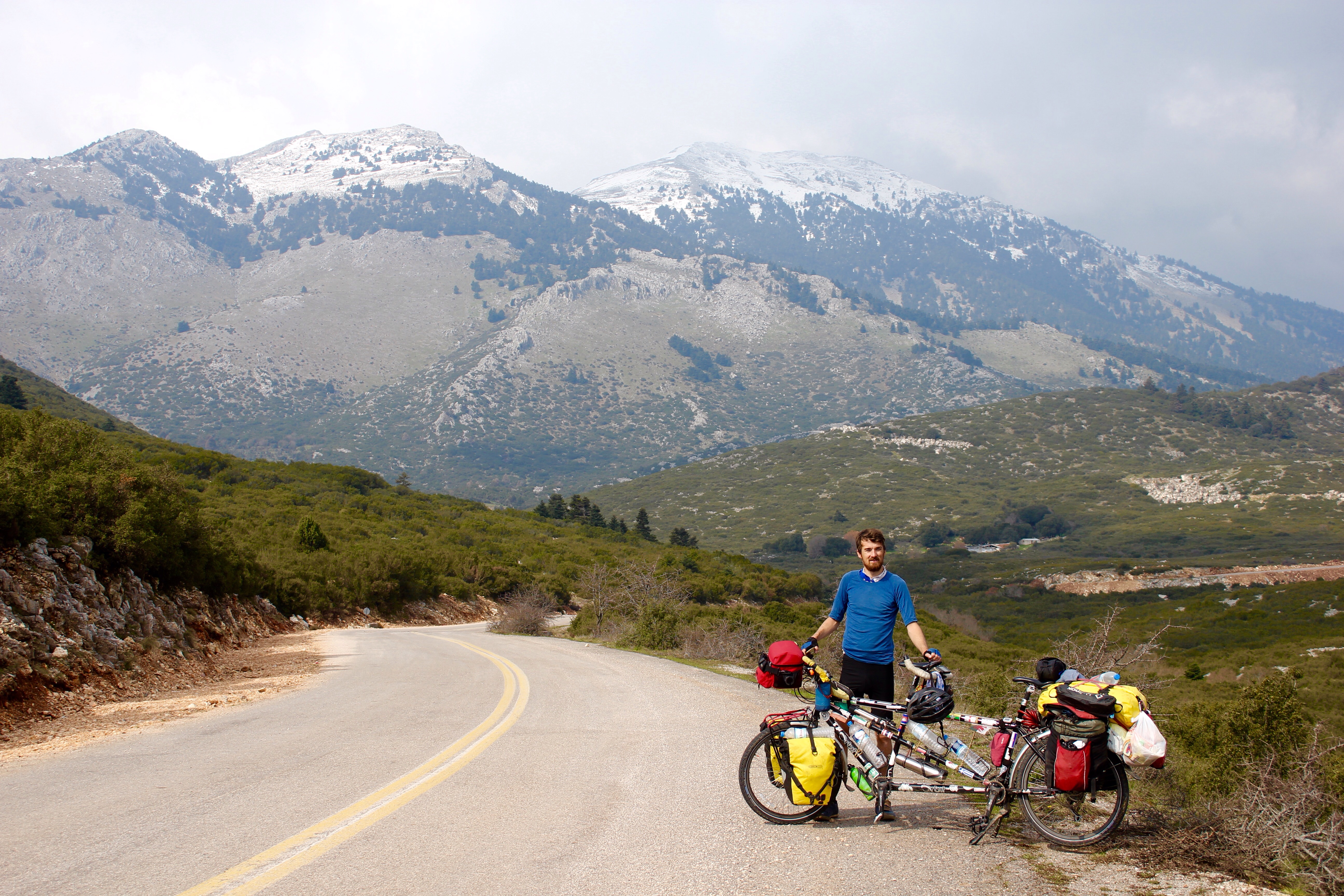 Next morning was quite unpleasant as we needed to get through busy Piraeus which involved lots of cycling on dual carriageways and across large overpasses. By lunch we’d broken the back of it though and the afternoon saw us start to tackle our first major climb of the year. We soon discover that Greece is very very mountainous!