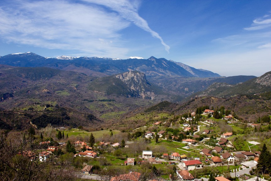 The ski resort is a 16km detour up the mountain and would be far too cold for us to camp. So we hatched a plan to get down to Eptalafos, find somewhere suitable to camp on its outskirts, check we could rent equipment at the resort and then hitch a lift early in the morning.