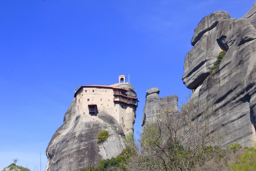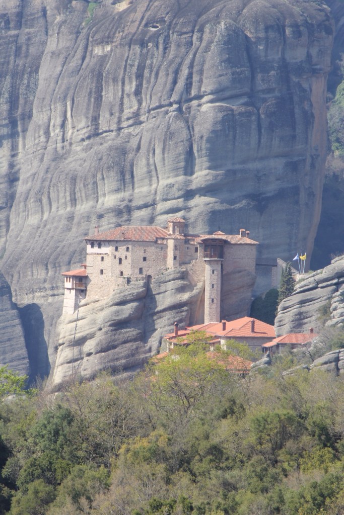 The Meteora is collection of curious rock formations which jut out of the ground to a height of 600m plus. Weathering and erosion overtime along the fault lines means that many of the rocks now stand alone, reaching into the sky like long fingers. There’s hardly any vegetation and they all share the same smooth, grey, uniformed surface which makes them almost impossible to climb.