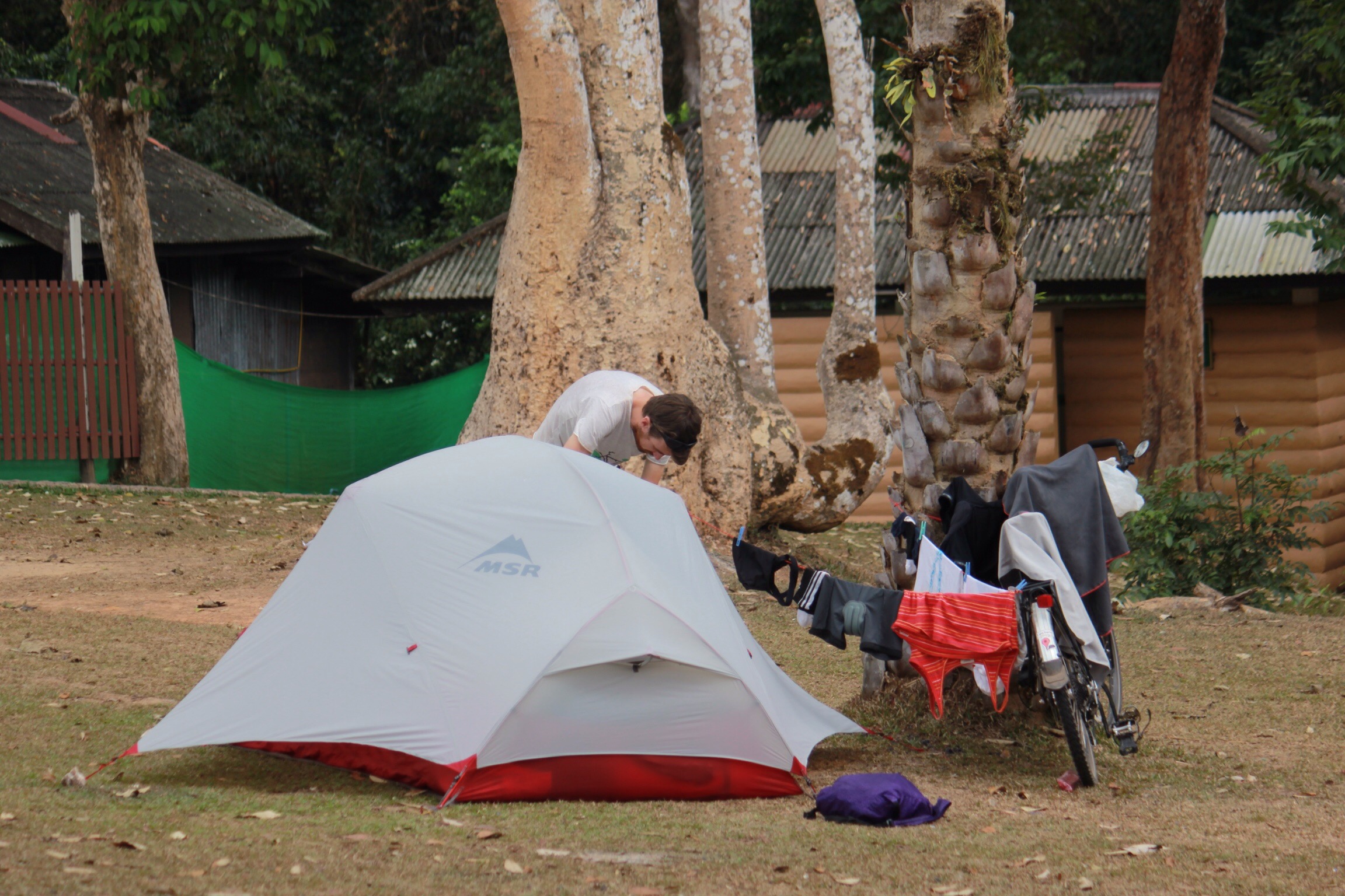 Once set up we realise that it’s not possible to get our hands on any beer. Alcohol is technically prohibited in the reserve, but all the Thai groups have brought their own and are happily sipping away at ice cold beverages. Damn, we should have done our research!