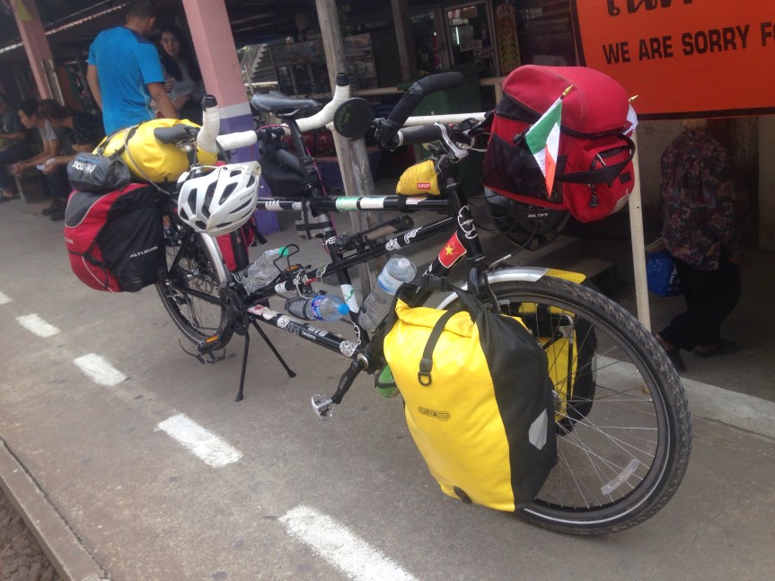 At the gate we meet a friendly Thai cyclist who is out for a Sunday morning cycle from Prachin Buri. We explain we’re heading for the top while jealously eyeing up his unloaded lightweight road bike.