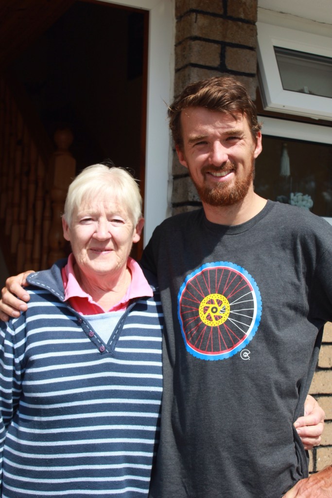 By the afternoon we had followed the coast road back out towards the Atlantic, cycling through Ahakista and passing the stone square towers that dot the coast here. We reach Kilchrohane by 3ish where we had made plans to visit Eleanor – a distant relative of Paddy’s dad who still resides in the house that Paddy’s grandmother was born and grew up. Paddy’s dad has fond memories of summer holiday spent in Kilrohane so we were both keen to visit the house and surrounding area.