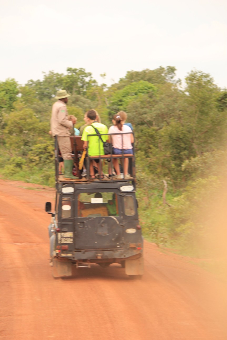 We cycled into the park the next morning early and discovered it offers jeep and walking trips at a fraction of the price to other Safari experiences (a two hour jeep safari costing us just £8 each.) The motel, at £48 per night, sits on the edge of a ridge looking down across a large section of open savannah and two watering holes. And despite the hour long wait for food was luxurious compared to the other places Paddy and I had been staying in so far. I can’t see us spending thousands of pounds on a Safari experience in the future so this was a good compromise! Unfortunately we hadn’t booked the Motel in advance so could only get our second night there. This meant camping in the rather deserted camp site where all the baboons hangout after dark. Slightly surreal but actually quite a fun experience, (despite my mild irrational panic in the night about hungry leopards coming across the tent!)