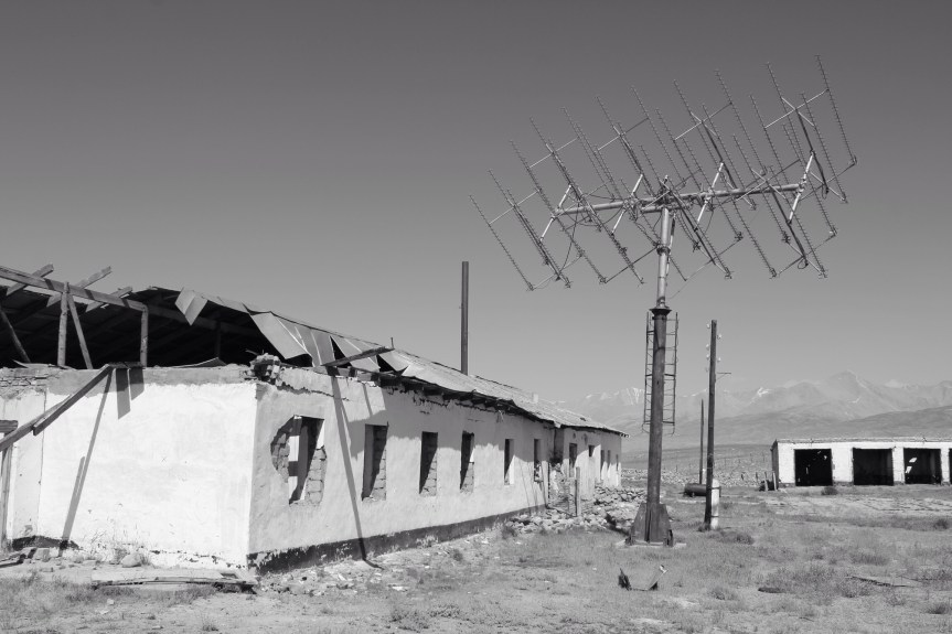 The road is TERRIBLE and it’s really slow progress. At 11am we take half an hour to explore an abandoned Russian military camp which sits overlooking Lake Zorkul right where the Tajik/Afghan borders meet.