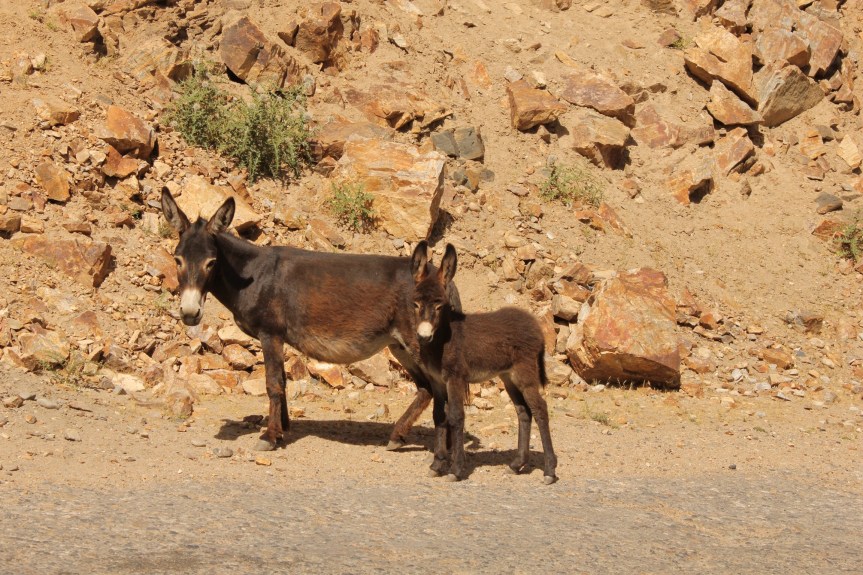 An early and very cold start – our water bottles were half frozen! We shake the sand out of everything before packing up and we’re soon back on the road which turns back into asphalt.