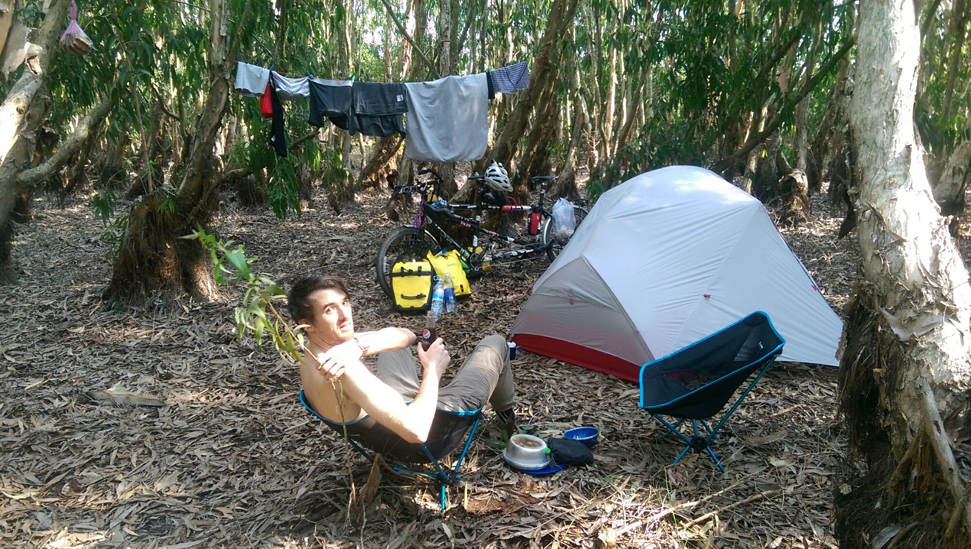 Due to the Delta area being intensley irrigated and farmed, finding a camping spot was a little tricky at first. Finally we passed a small patch of forest next to the road which turned out to be pretty perfect. The only slight irritation were the red fire ants but long socks and our helinox chairs soon sorted us out.